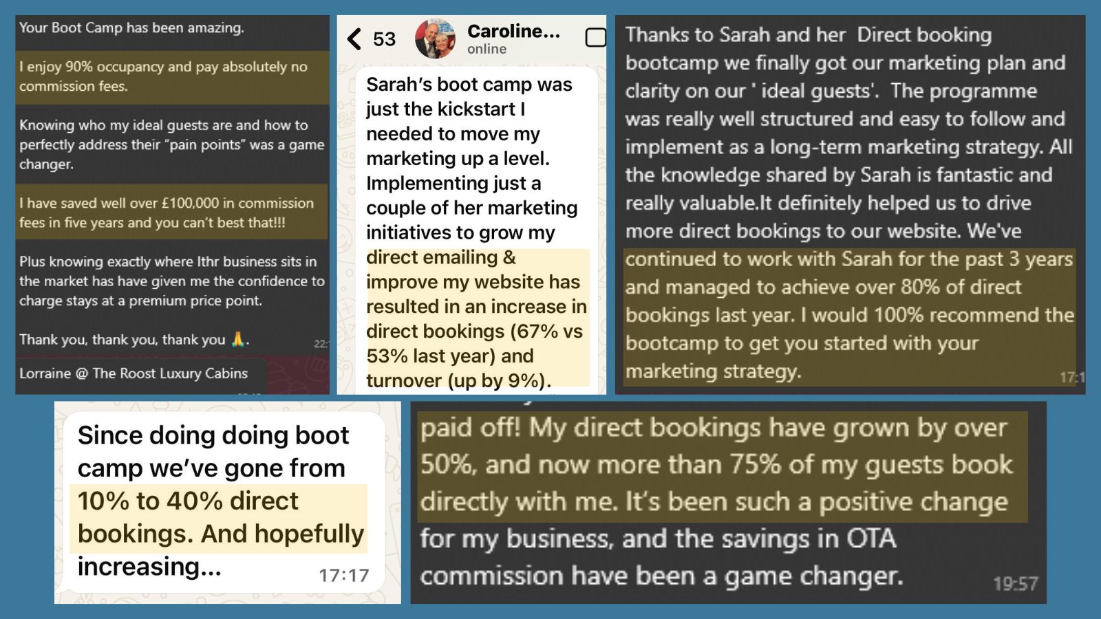 I have saved my own holiday business over £100,000 in online booking agent commission in our first 5 years with 100% direct bookings!
